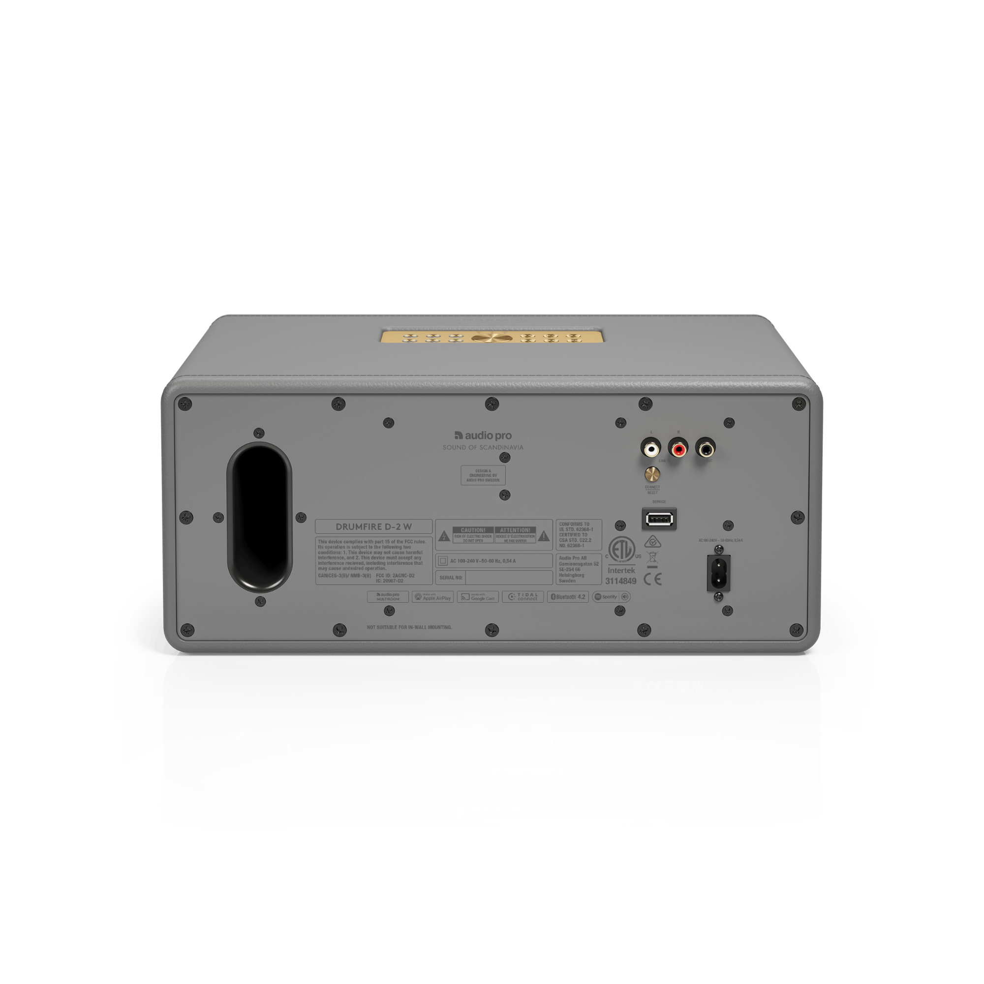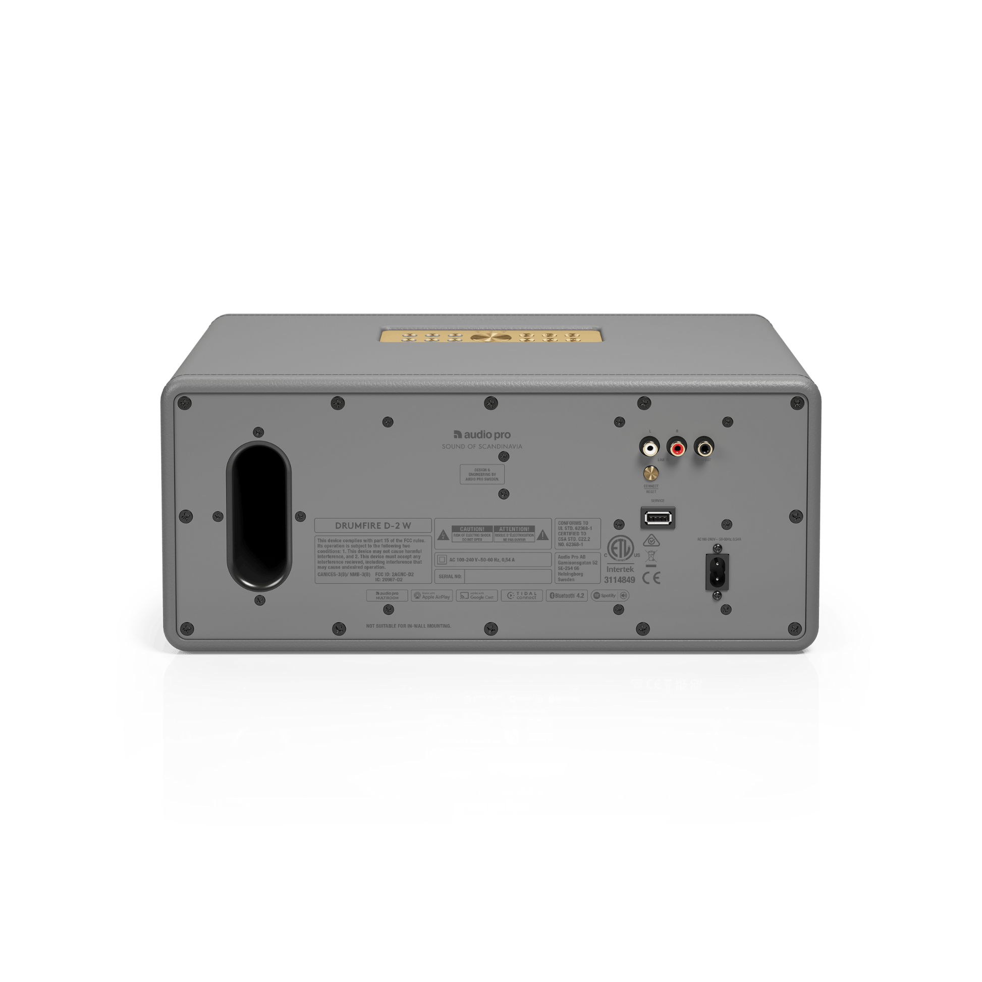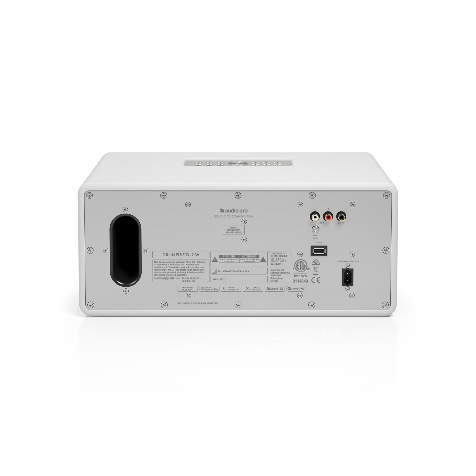 This speaker is the top unit of the Drumfire II W, that will give you quite a punch, even on its own. It offers multiroom listening via our new app, as well as the option of Google Cast, AirPlay 2. Delivering pure HiFi acoustics, with deep, controlled bass and crispy highs.